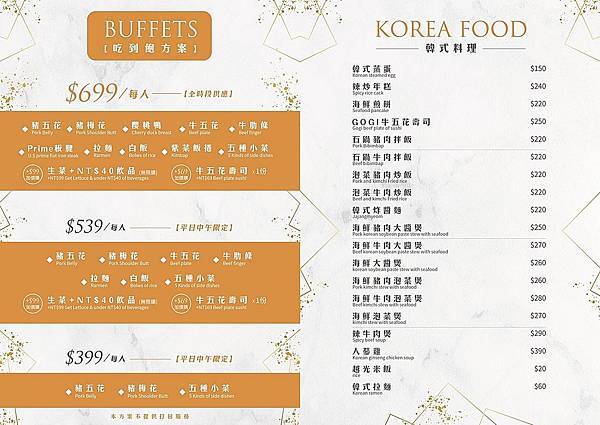 699吃到飽的方案共有六種肉品可以無限量享用,還有三種主食以及小菜可以品嘗